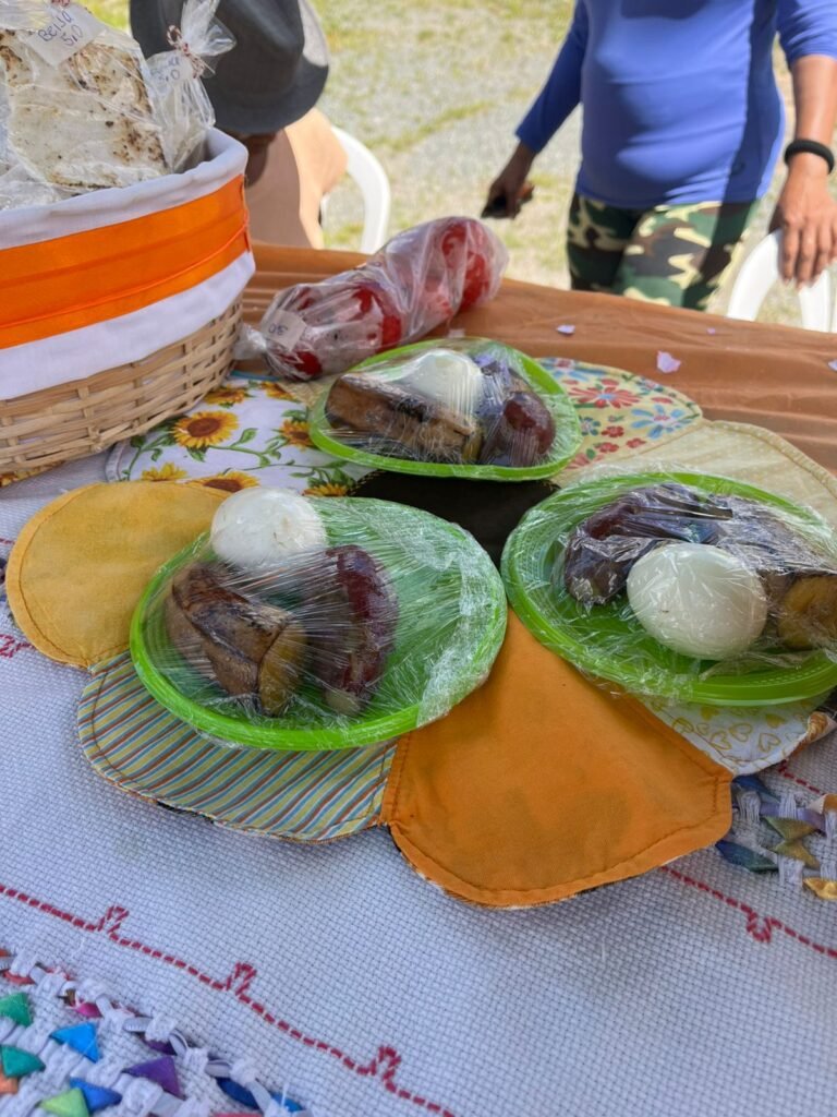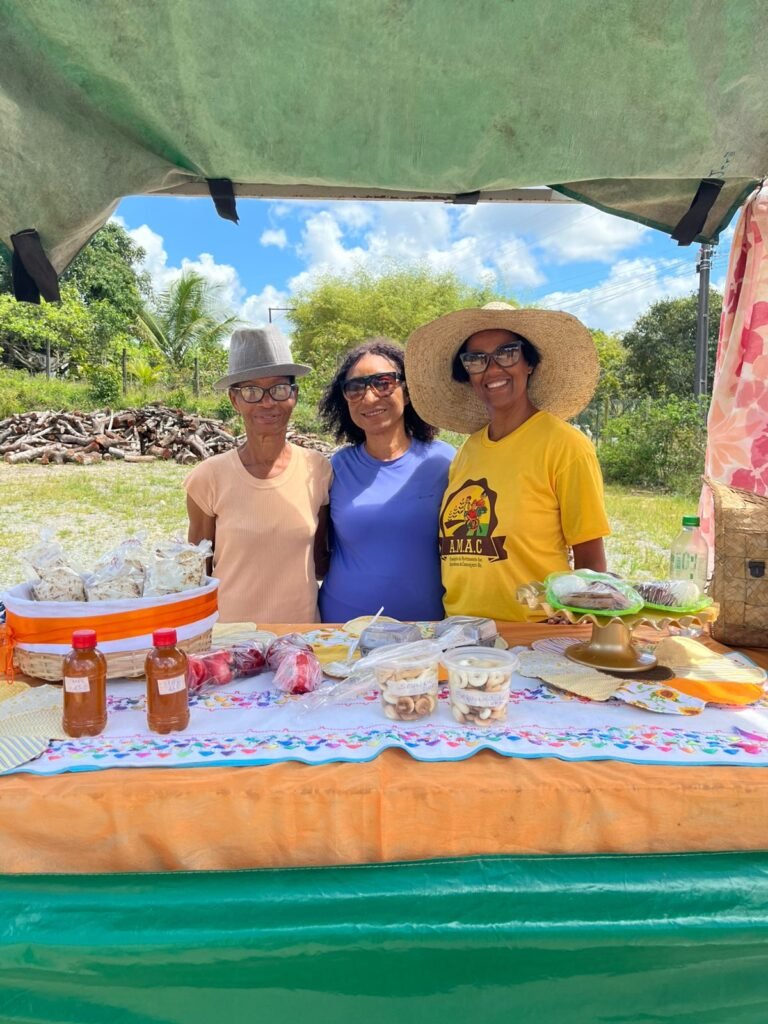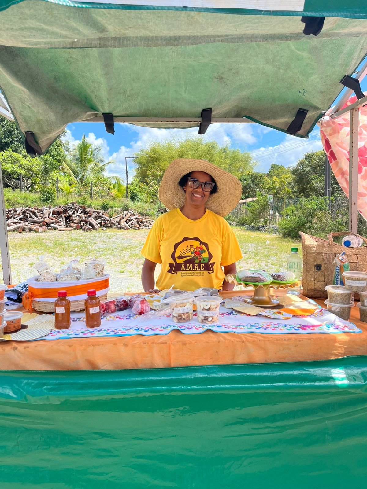 Além de trabalhar na terra, também trabalho na feirinha onde compartilho com a comunidade os produtos do meu ofício, e conto com o apoio da minha filha e netas. Estou orgulhosa de compartilhar meus produtos e minha história com vocês.