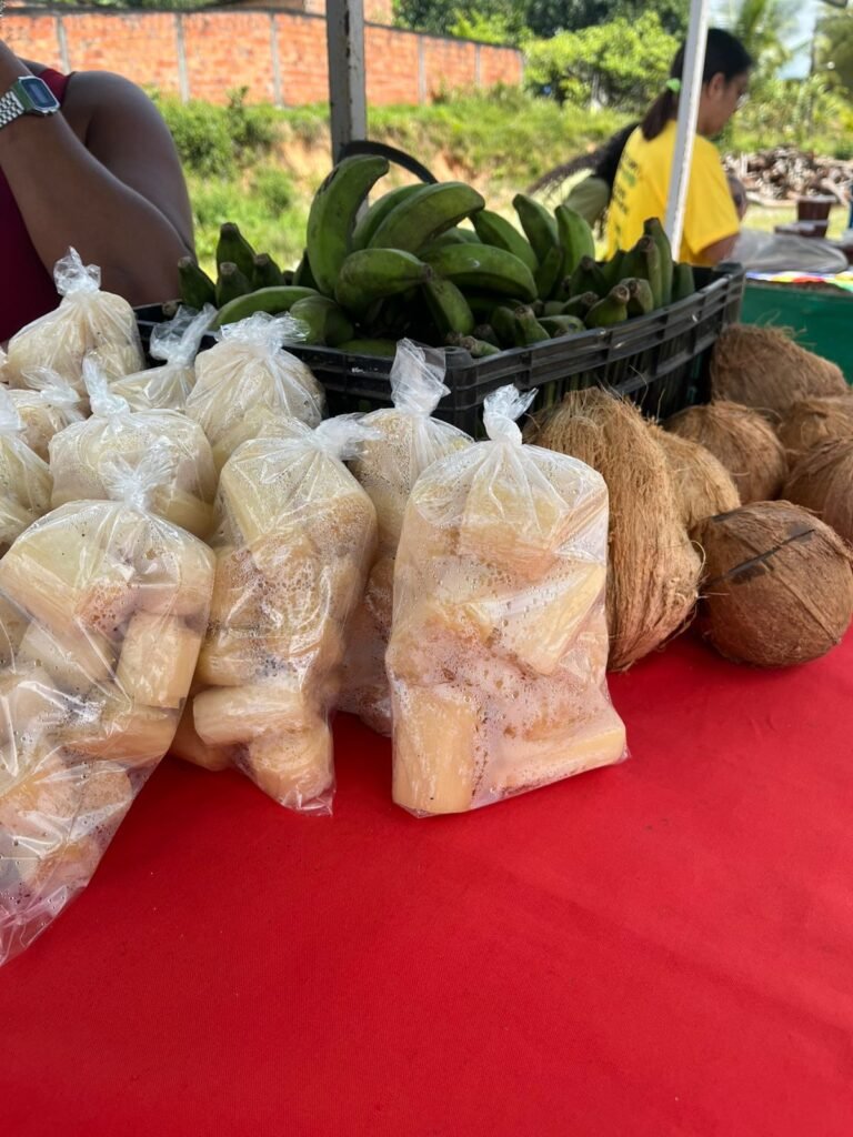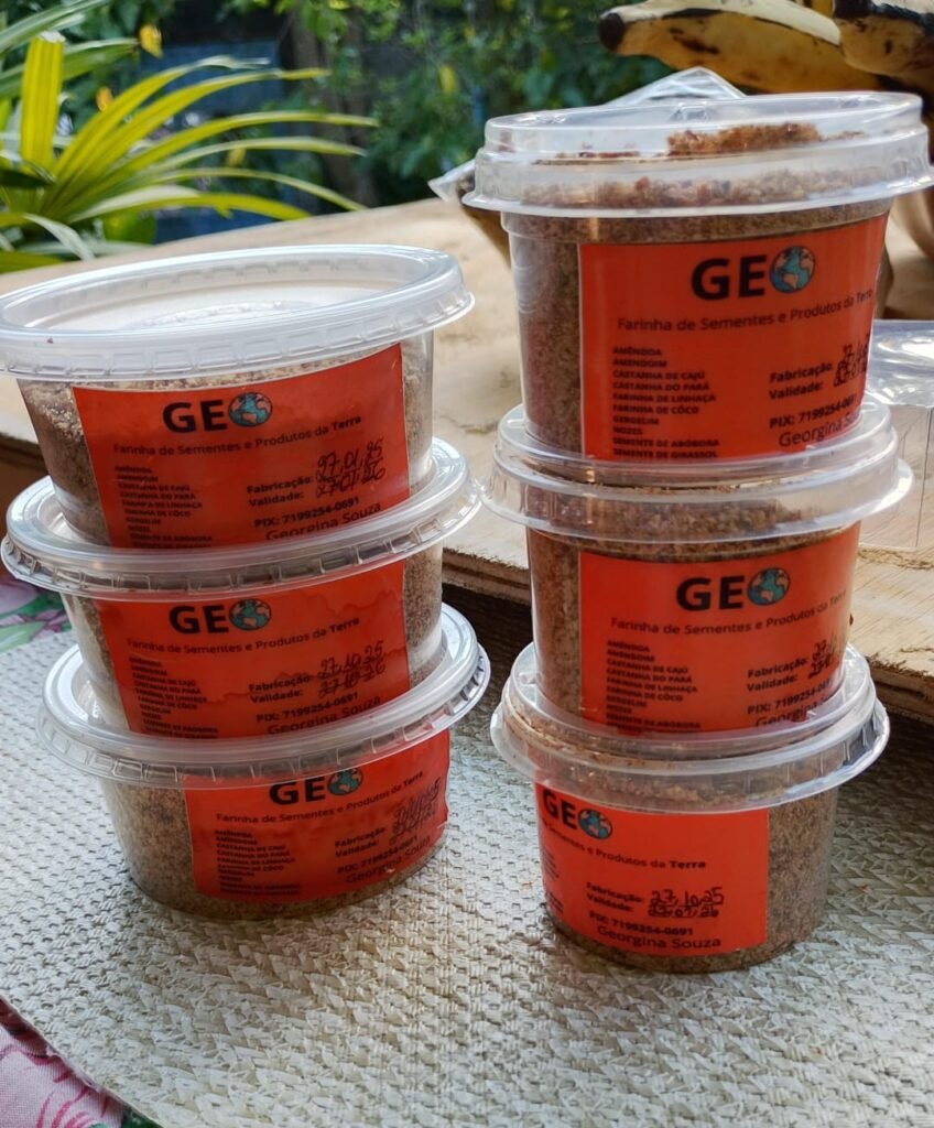 .Farinhas de sementes; .Tempero natural; .Barrinhas de cereais; .Bolos de frutas; .Brigadeiros, beijinhos, empanadas, cuscuz; .Sucos, chás, cevada; .Ovos, frutas e raízes — tudo com o sabor e a energia da terra.